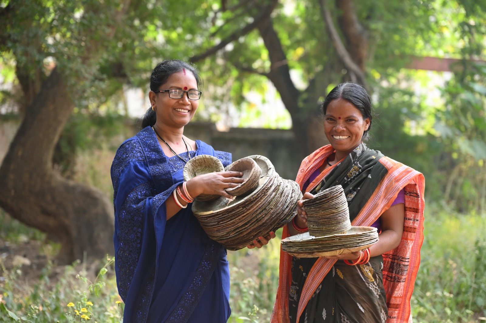 Promoting eco-friendly practices and sustainable livelihoods through leaf plate making and plastic reduction.